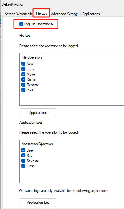 - Application Log : It logs below operations in specific applications (i.e. Adobe Reader, Microsoft Access, Word, Excel, and PowerPoint)